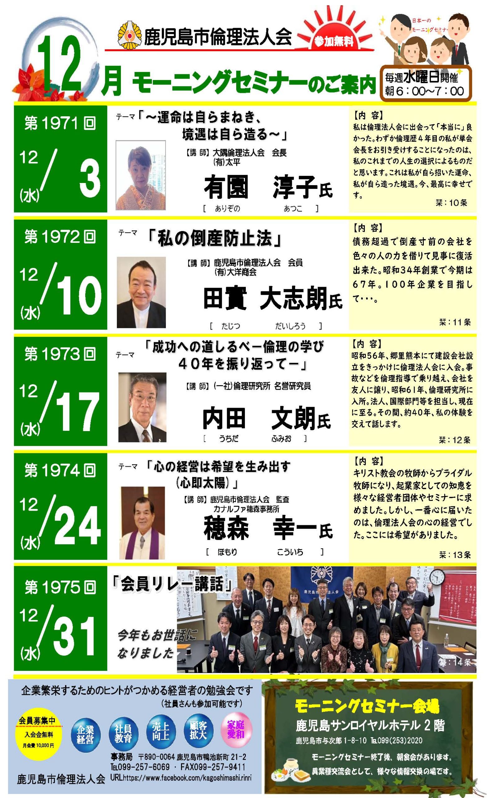 鹿児島市倫理法人会の令和7年12月モーニングセミナースケジュールです。